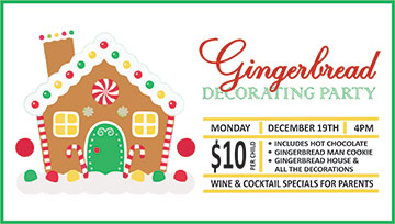 Don’t miss the first annual Gingerbread house decorating party inside /Pôr/ just behind Bittersweet Cafe. This kids-centric event is fun for the whole family and led by /Pôr’s/ talented pastry chefs! There will be wine and cocktail specials for the parents to enjoy while the staff helps the kids create their masterpiece.