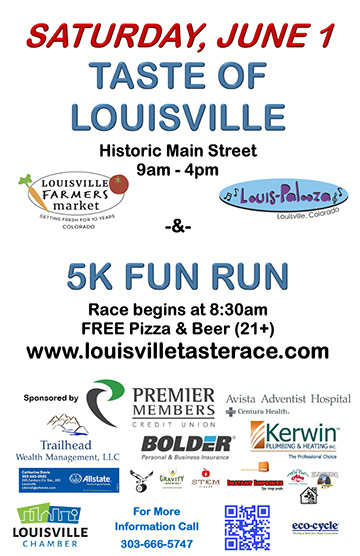 The Louisville Chamber of Commerce invites you to The Taste of Louisville! Kick things off with the Fun Run at 8:30 am then stroll down Main Street and experience the best that Louisville has to offer. Food, entertainment, shopping, and more await you at this beloved annual event! It truly is a “taste” of living in Louisville.