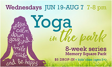 Join Yoga Junction at Memory Square Park each week for yoga outside! This all-levels class is led by a different teacher each week and is only $5! Plus bring the kids – we have a separate kid’s class for $5/child as well! For more information: louisvilleyogajunction.com